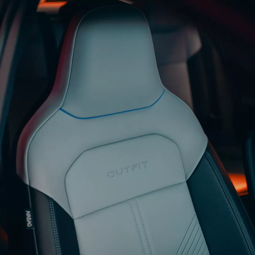 Asientos integrados con tapizado en cuero ecológico exclusivo Outfit, que cuidan tu postura y realzan la experiencia a bordo.